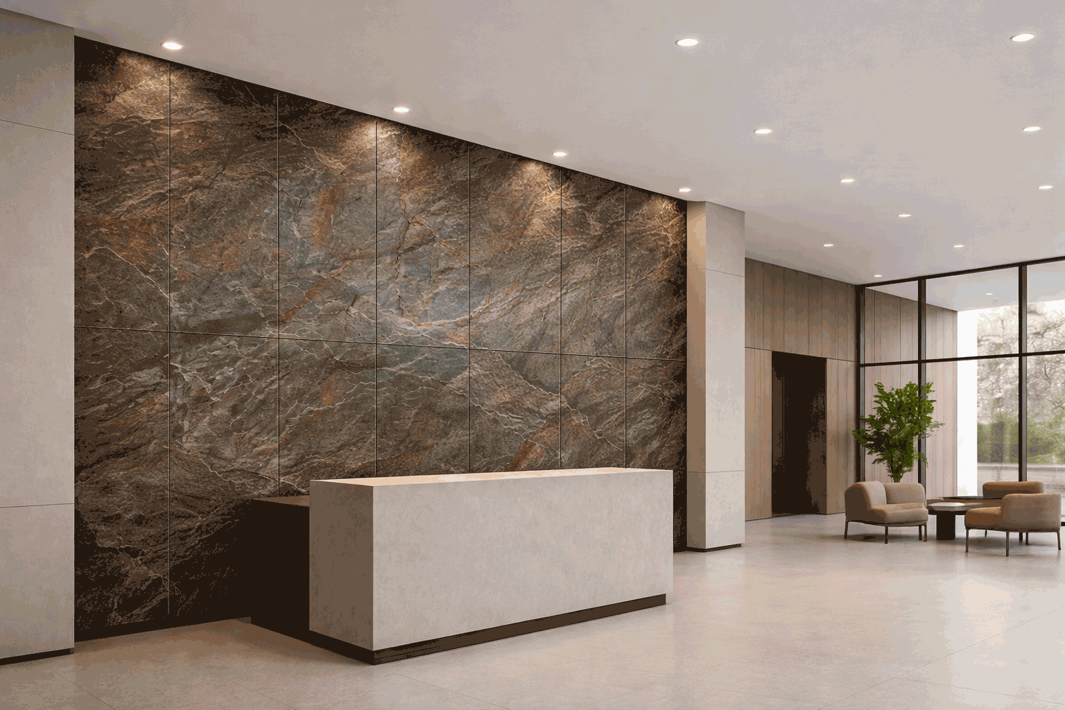 Certain stone types can be backlit for dramatic translucent effects — great for luxury retail walls, hotel lounges, and reception spaces.